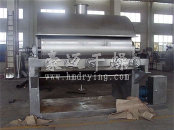 Drum scraper dryer is attached to the rotary drum cylinder, the liquid phase material in the way of heat conduction for continuous operation of drying equipment. The material film is formed on the outer wall of the drum rotating at a certain speed by the material liquid and the distributing device, and is heated by the hot drum wall of the heating medium (steam or heat conducting oil) continuously flowing in. The material film is scraped off by a scraper after drying.