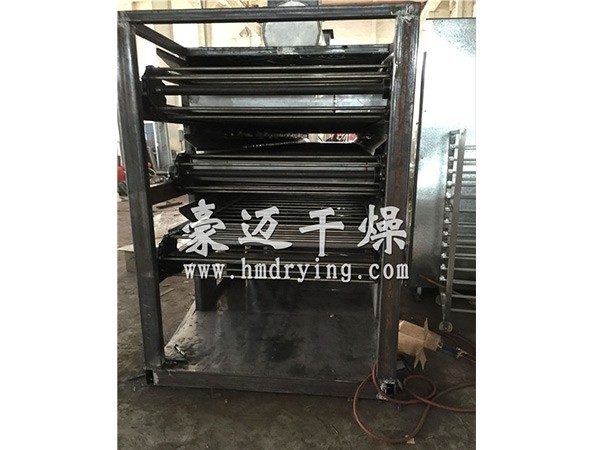 Working principle of Haomai special belt dryer: The measure to solve this contradiction is jet air drying. High temperature hot air flows from the slits or holes in the hot air distribution mechanism to the material layer at high speed. The high-speed air flow has strong heat transfer effect and can quickly transfer heat to materials. However, the time for the material to pass through the spray zone is short, and it is in the non spray zone for a long time. In this area, the surface temperature of the material is transferred to the interior, and the material surface will not be too dry when it reaches the next air outlet. In this way, the heat energy transferred by hot air to the material mainly becomes the surface steam heating, and a small amount of heat is transferred to the material interior to make the material temperature rise. This way of using high temperature hot air without keeping the material in high temperature environment is a measure to solve this problem. The drying machine can be divided into three stages, i.e. the drying machine can be connected in series to form a high temperature and humidity drying unit, and the drying process can be divided into three stages, i.e. constant temperature and low temperature. The moisture in the material evaporates uniformly at different drying temperatures, so as to achieve the purpose of drying.