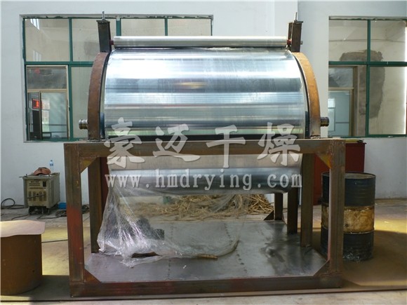 Drum scraper dryer is attached to the rotary drum cylinder, the liquid phase material in the way of heat conduction for continuous operation of drying equipment. The material film is formed on the outer wall of the drum rotating at a certain speed by the material liquid and the distributing device, and is heated by the hot drum wall of the heating medium (steam or heat conducting oil) continuously flowing in. The material film is scraped off by a scraper after drying.
